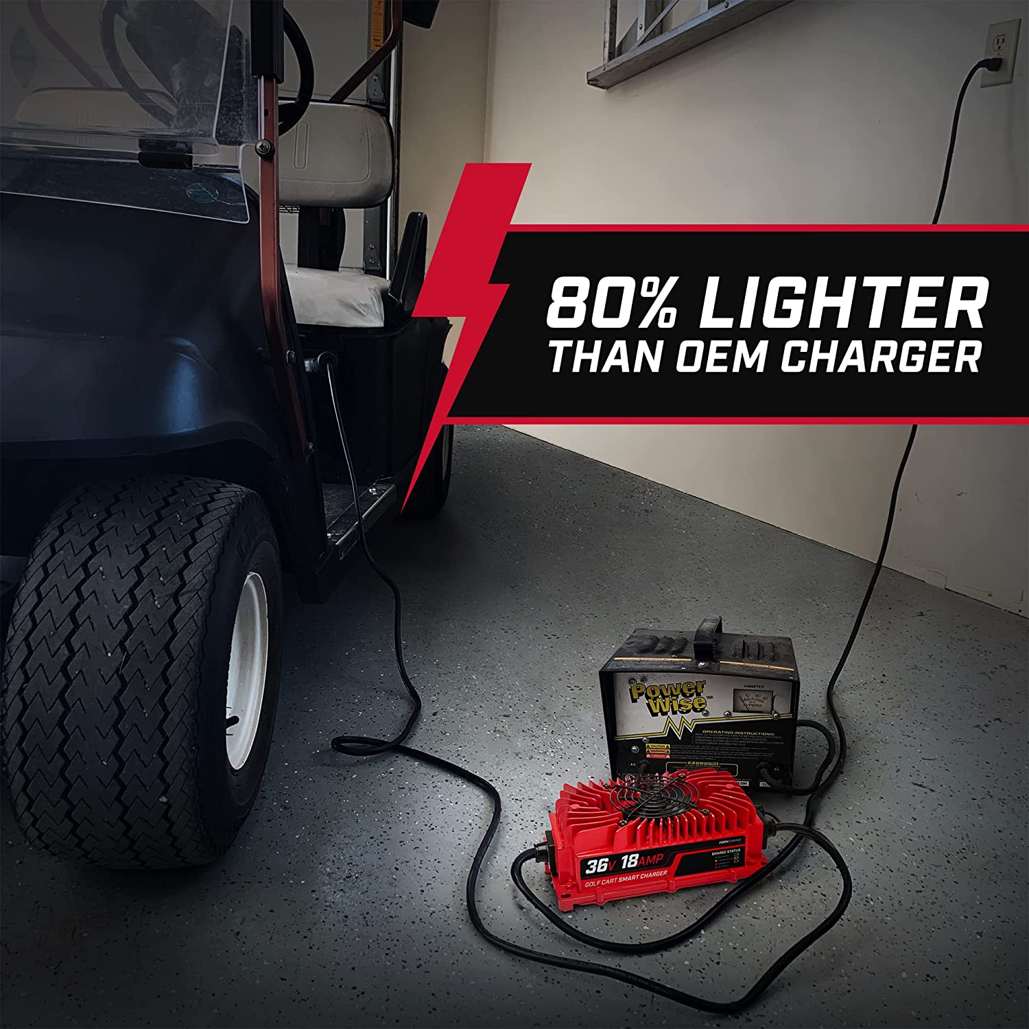 - Charger with 8ft AC input cord & 8ft DC output cord with Club Car Circle Plug
