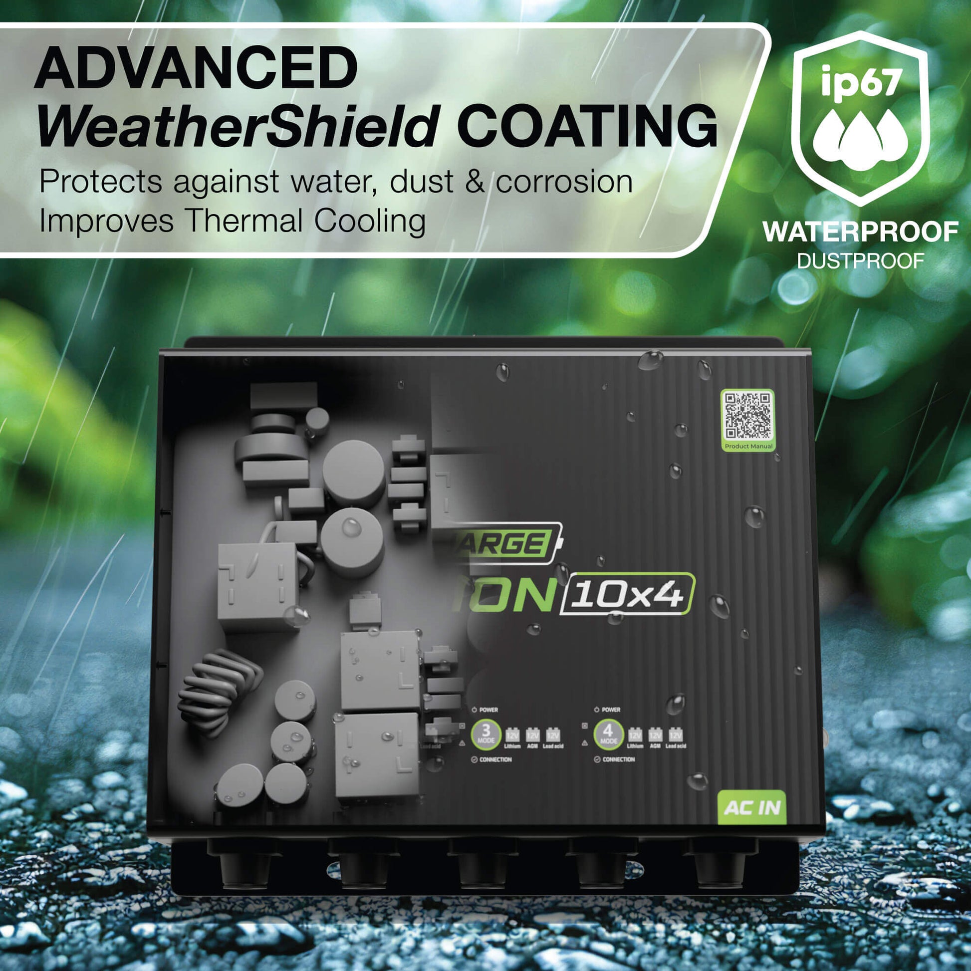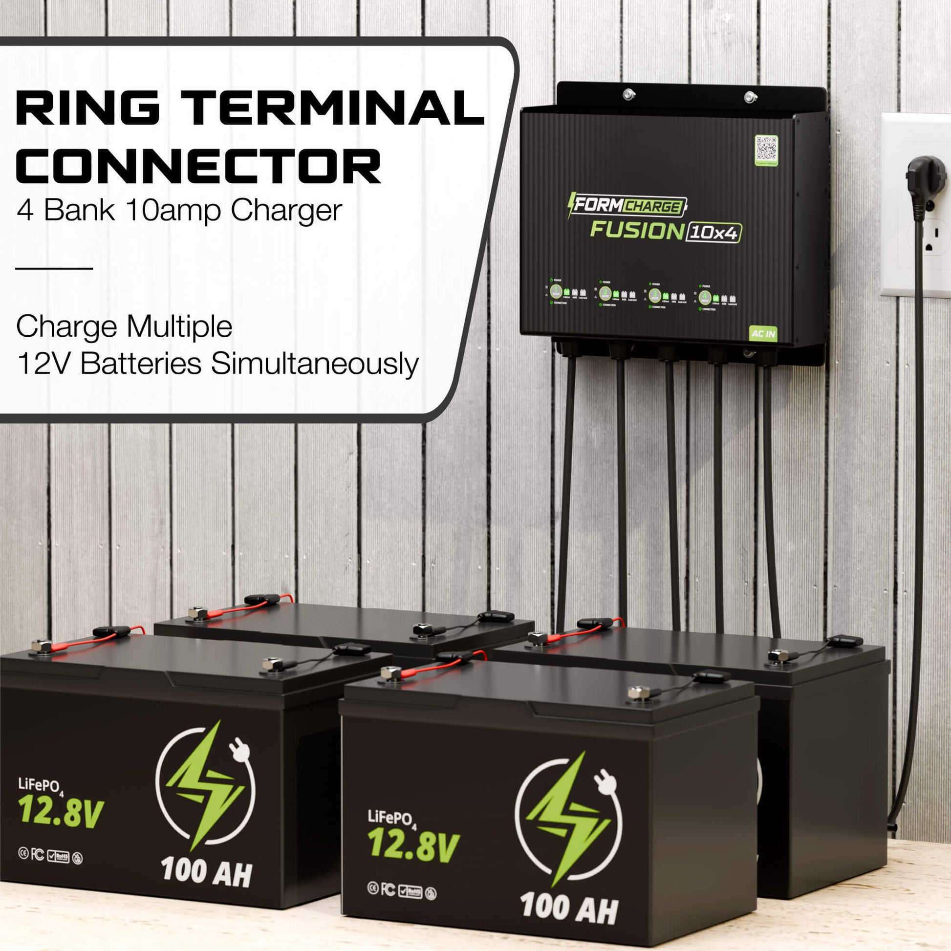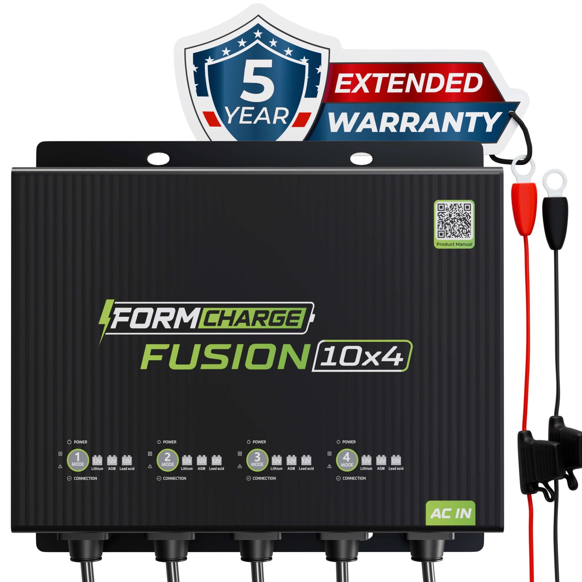 FORM Fusion 10X4, 4-Bank, 40A (10A/Bank) Smart Marine Battery Charger, 12V Waterproof Onboard Battery Charger for AGM, Lithium (LiFePO4) and Deep-Cycle Batteries